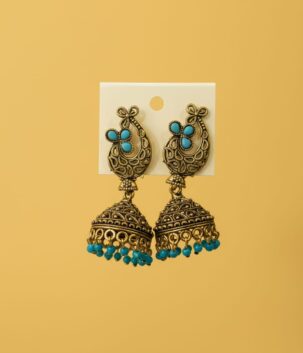 Antique Gold Jhumka Earrings with Turquoise Beads