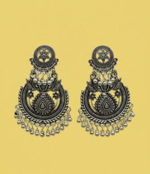 Oxidised Silver Traditional Chandbali Earrings