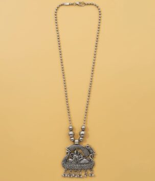 Oxidised Silver Radha Krishna Motif Long Necklace